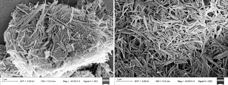 凹凸棒石原礦和棒晶束解離后的掃描電鏡照片(圖片來源:參考文獻[8])